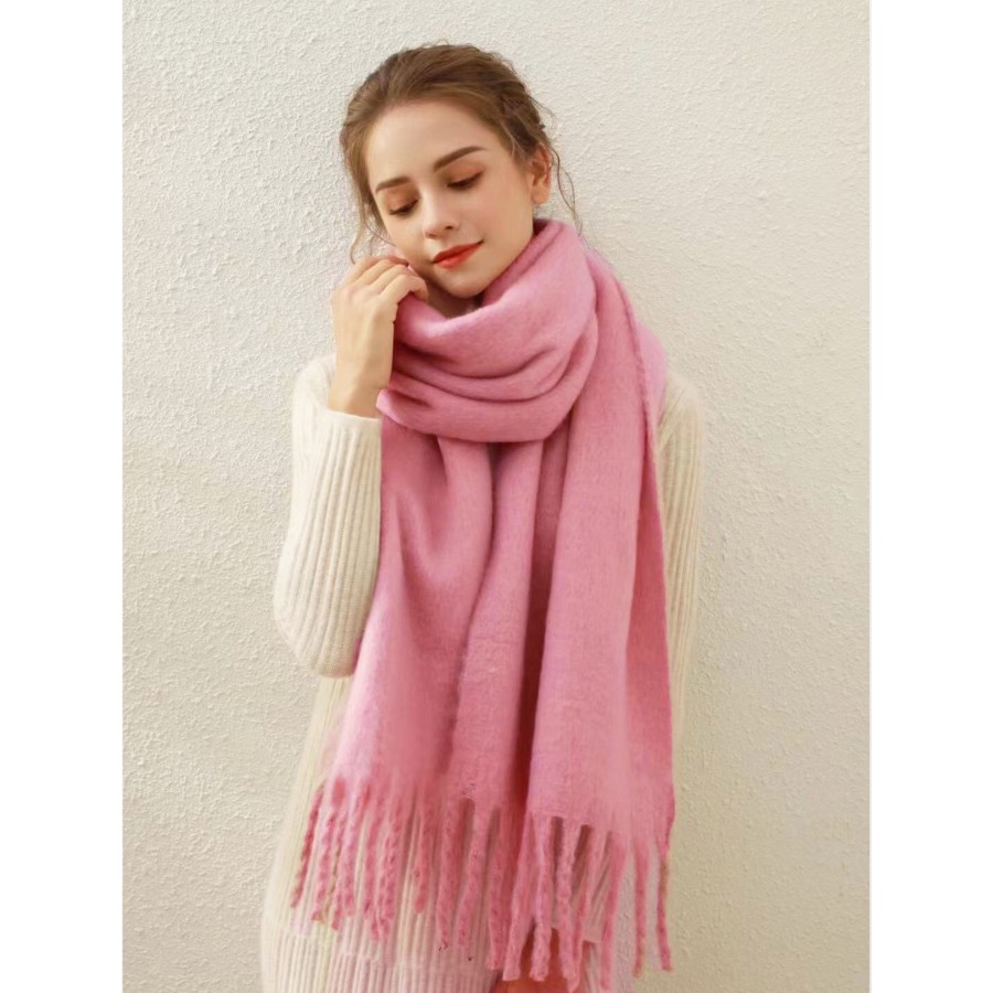 Solid Blanket Scarf W/ Twisted Tassels. Great for any fall & winter outfit.