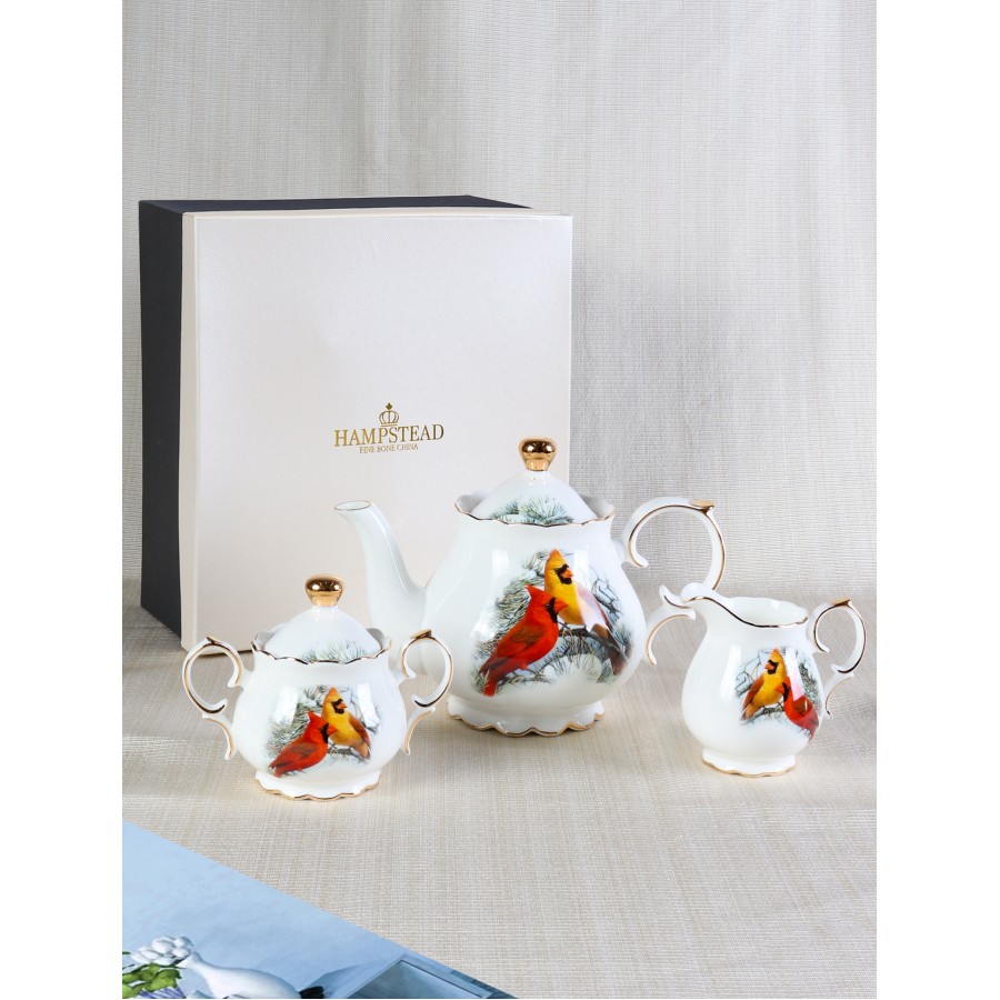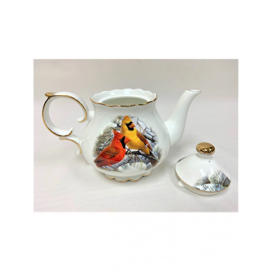 Fine Porcelain Cardinals 1000 ml Tea Pot. Creamer & sugar bowl; s/3 Great for tea time. Come with nice gift box.