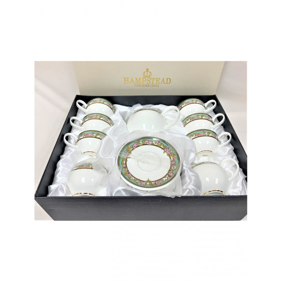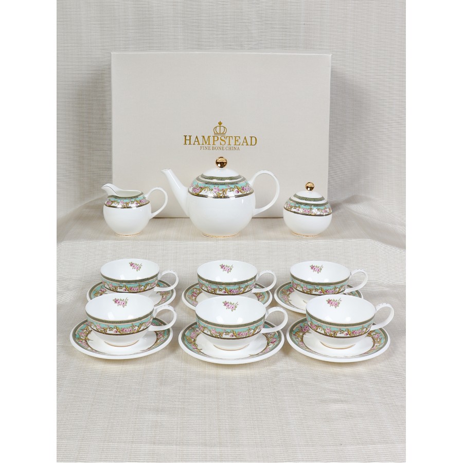 15 pcs Tea Set. Ideal for 6 person. This set includes: 1pc tea pot; 1pc cream pot; 1pc sugar pot; 6 cups and 6 saucers. Come With Nice Gift Box.