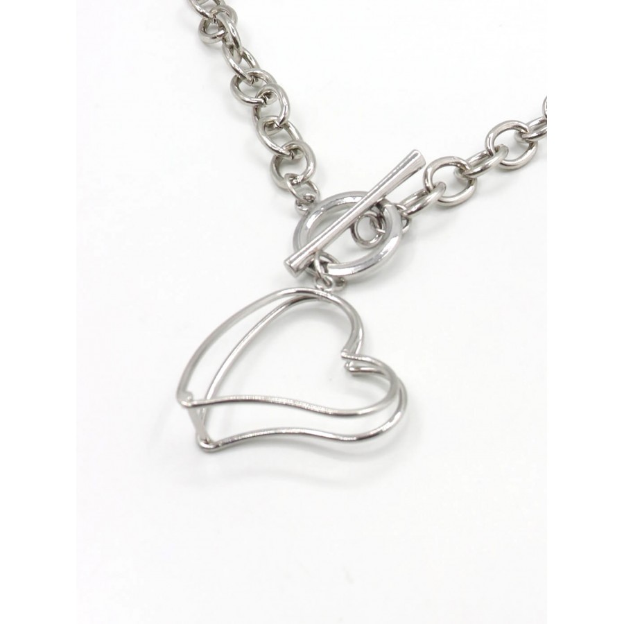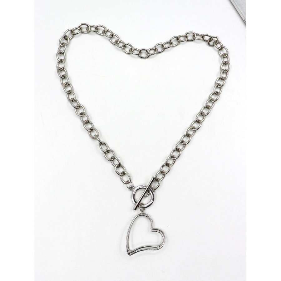 Chain necklace with heart pendent. Zinc Alloy Nickel Free Lead Free. Colour: Silver