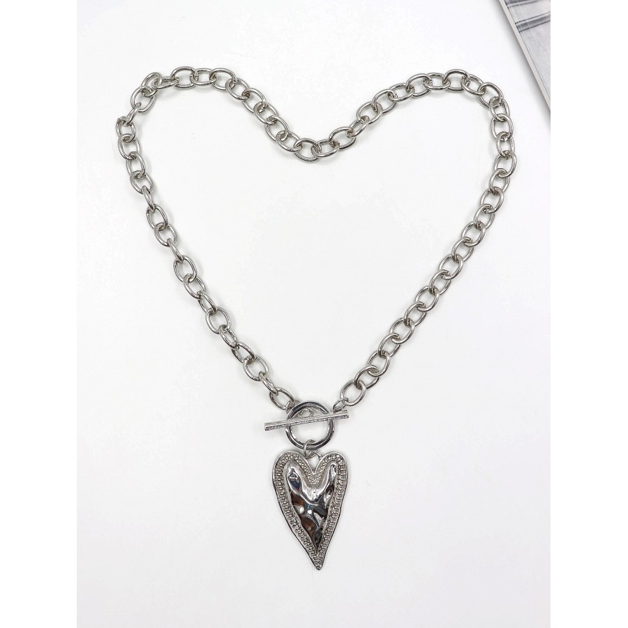 Chain necklace with heart pendent. Zinc Alloy Nickel Free Lead Free.  Colour: Silver