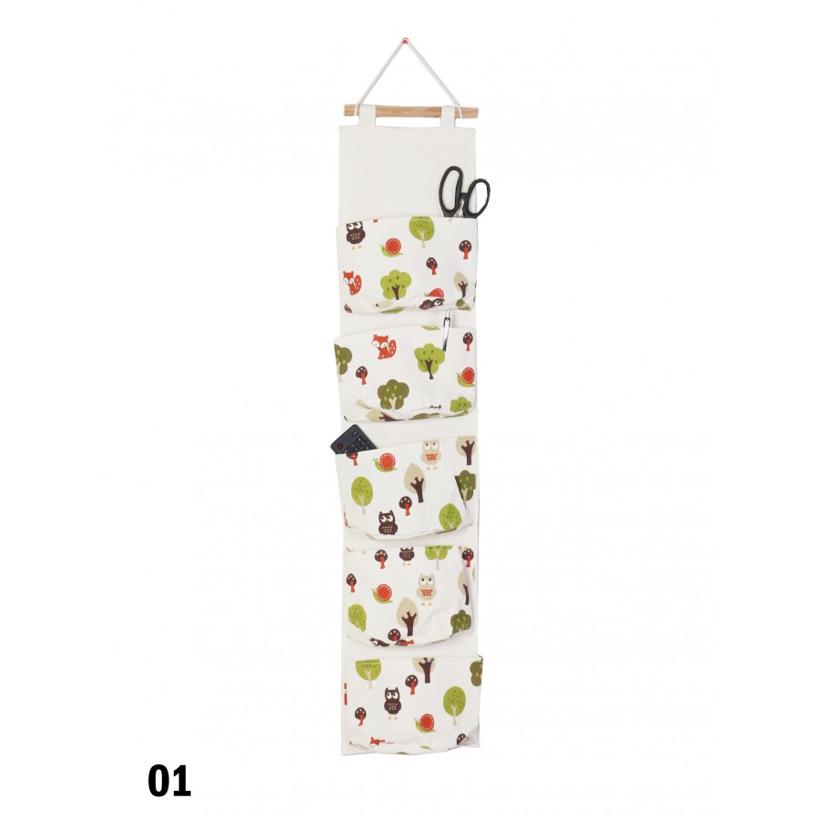 5 pockets wall hanging organizer bags. Pastoral style cotton line multi-layer clothing wardrobe storage hanging organizers. Material:cotton line