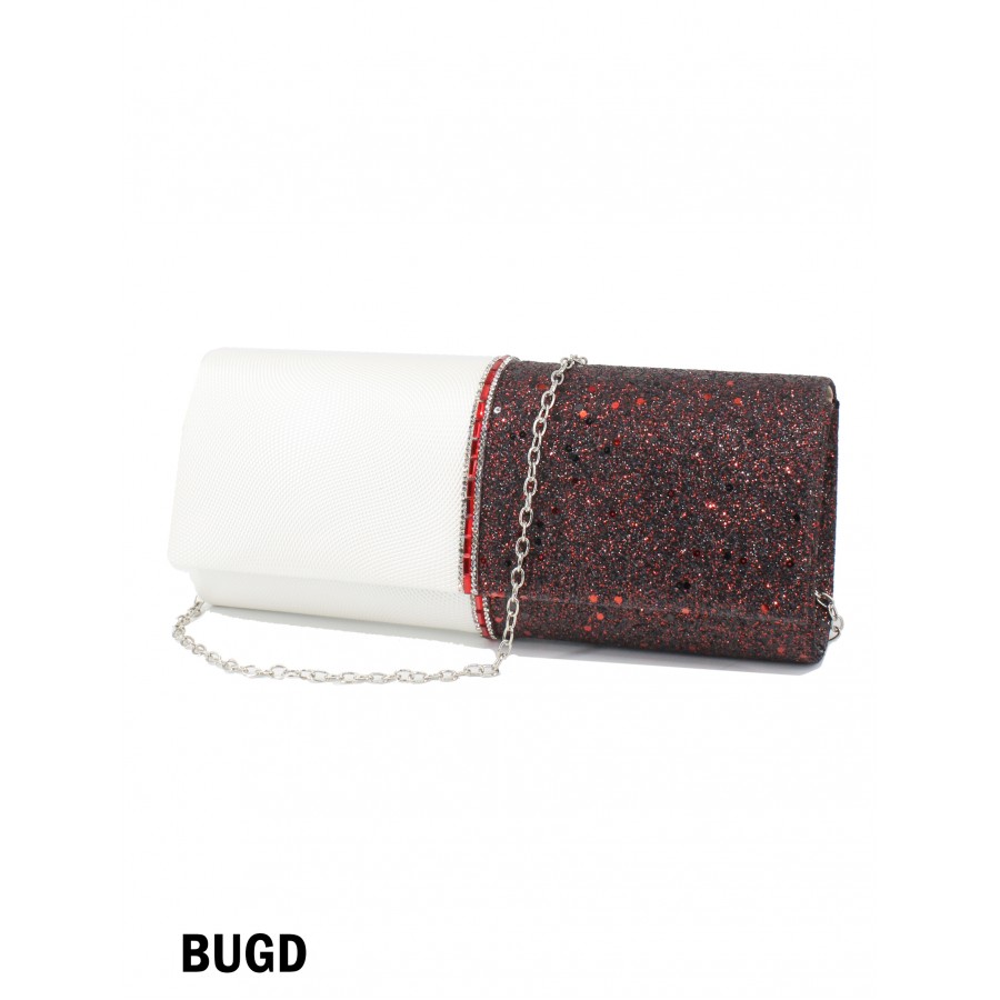 Sparkle Lurex Scrub style clutch with Rhinestone. Comes with long silver chain approx. 47".Colour: Burgundy