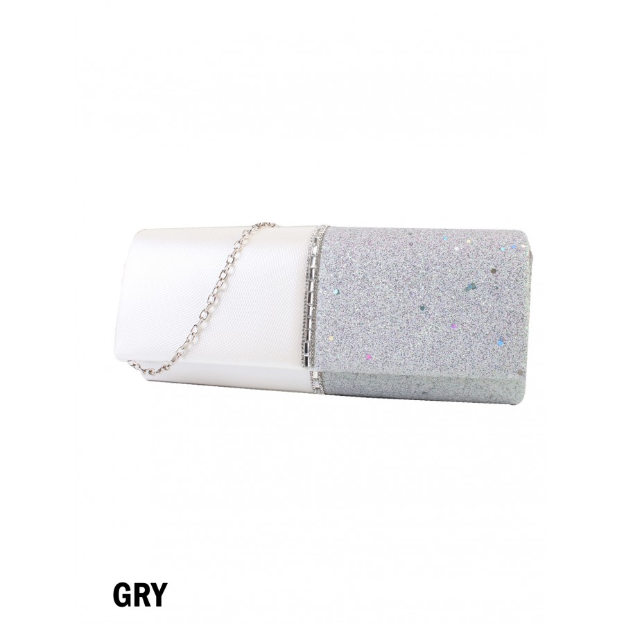 Sparkle Lurex Scrub style clutch with Rhinestone. Comes with long silver chain approx. 47".Colour: Grey