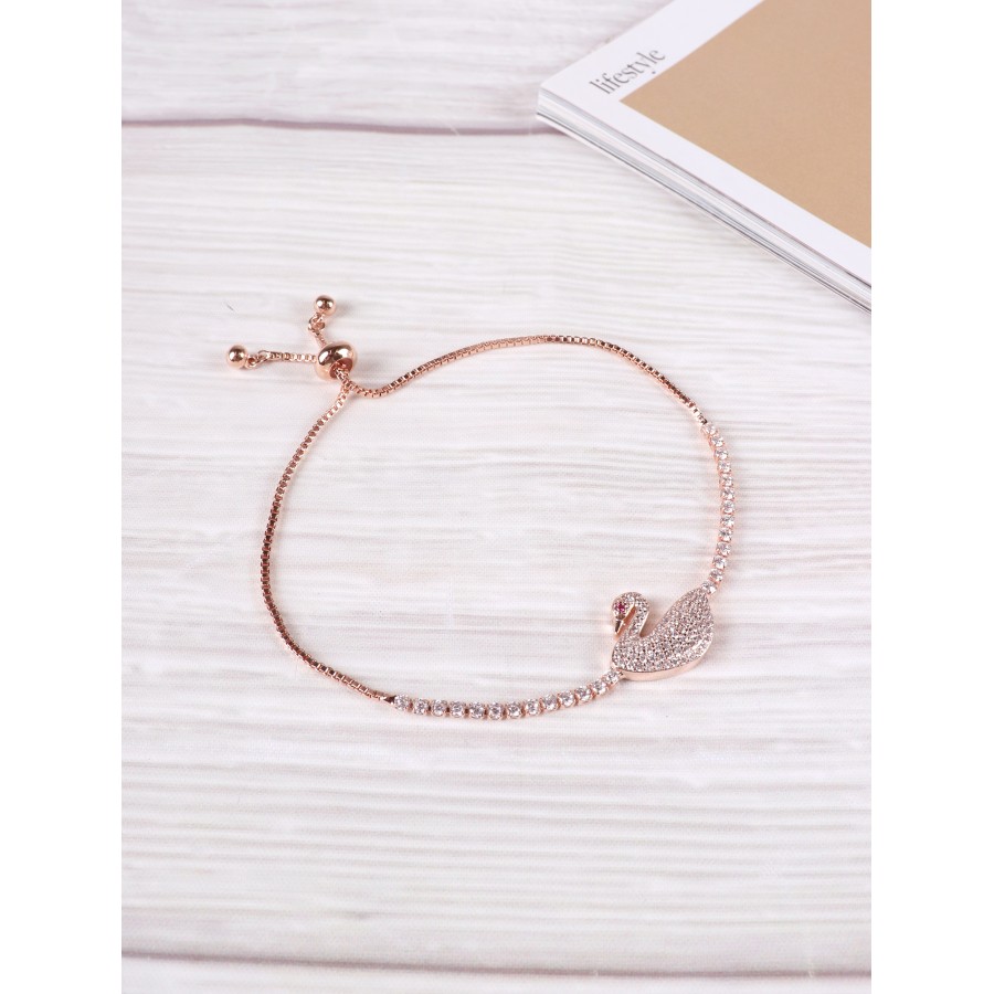 Adjustable swan pendant rhinestone stretch bracelet. New and popular design for this year. Great for layering multiple bracelets. Comes with beautiful box. Great gift for someone special. Zinc Alloy Nickel Free Lead Free. Color:Rose Gold