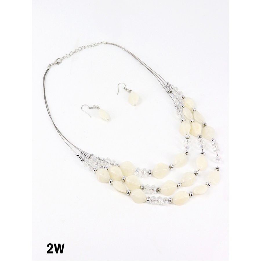 Gorgeous diamond and circular shaped beads necklace and earring set. Can be paired with a variety of outfits to create a elegant look. Zinc Alloy Nickel Free Lead Free. Colour: White