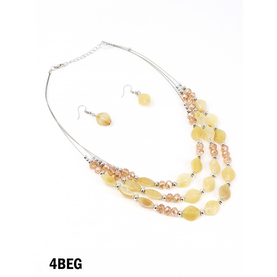 Gorgeous diamond and circular shaped beads necklace and earring set. Can be paired with a variety of outfits to create a elegant look. Zinc Alloy Nickel Free Lead Free. Colour: Beige
