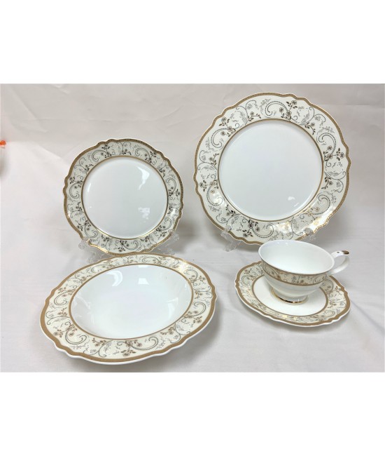 Minimum 1 Sets. This set includes: 4pcs of 10.5" dinner plates; 4pcs of 8.5" soup plates; 4pcs of 8" salad plates and 4 cups and 4 saucers.Come With Nice Gift Box.