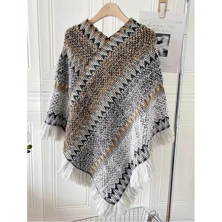 Fashionable Boho Aztec Poncho W/ Fringes . Stylish and warm for the cooler seasons.
