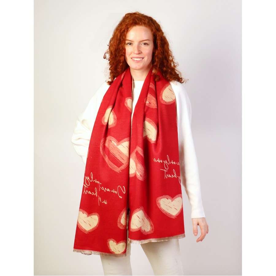 Reversible Cashmere Feeling Heart Design Scarf. Made with super soft material. Great for any fall & winter season. Colour: Red