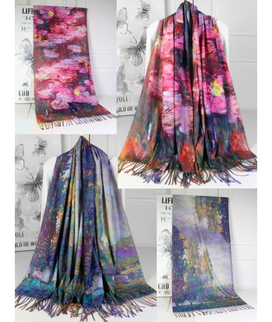 Water Lily & Summer Landscape Double-sided Oil Painting Scarf